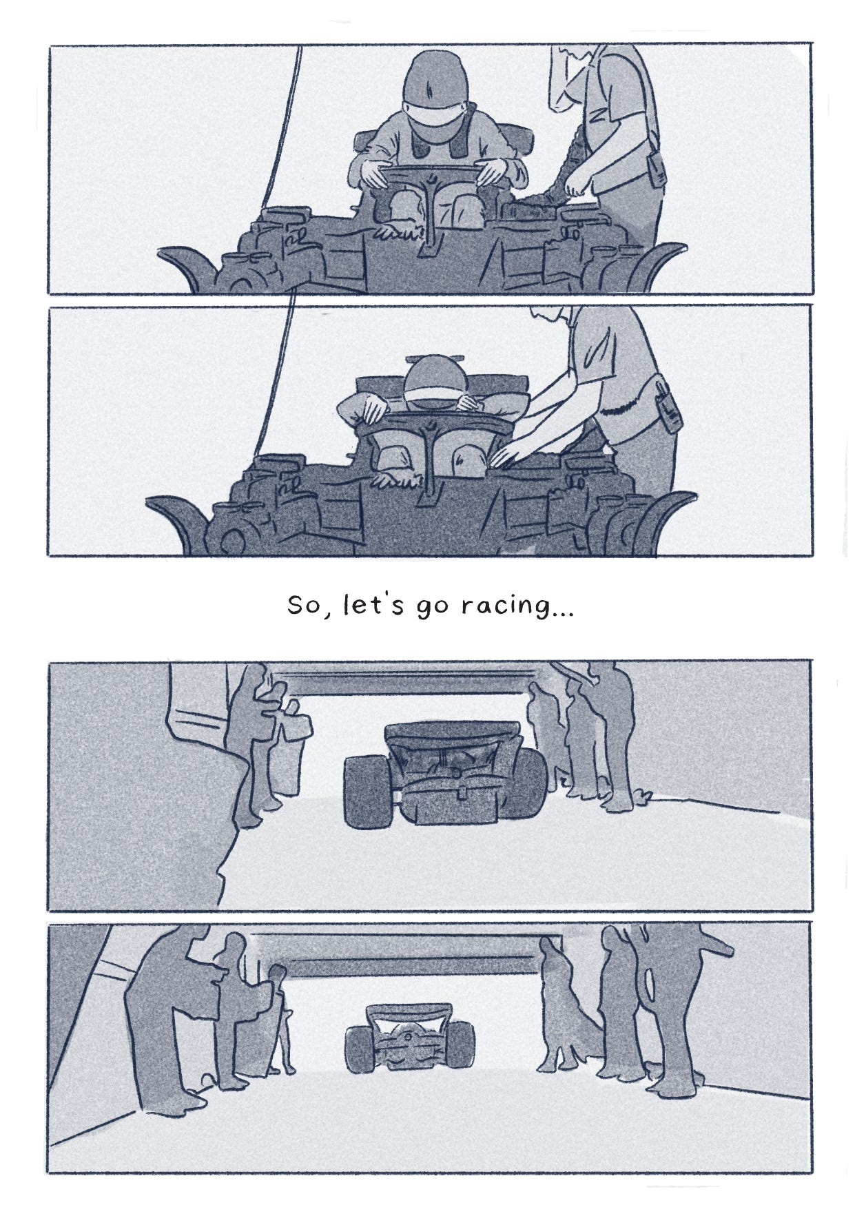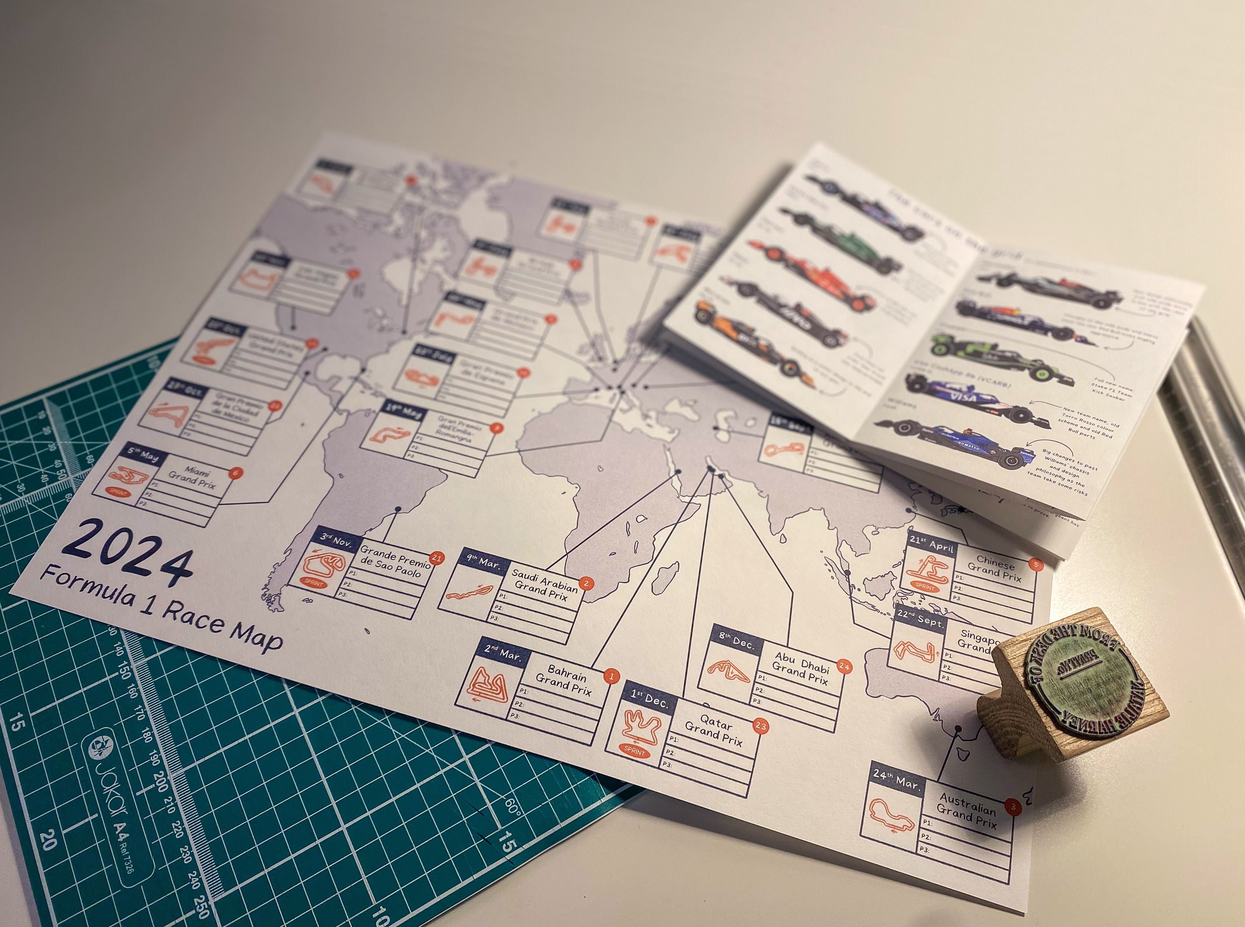 I did also make this month’s letter as an excuse to design the race map of my dreams. You can pick up your own copy as a fold-out in my race season warm up zine, which includes illustrations of every car on the grid.
